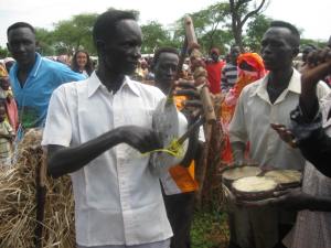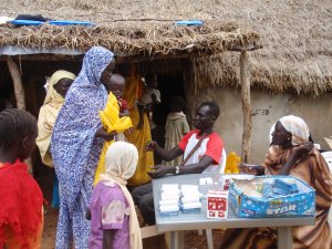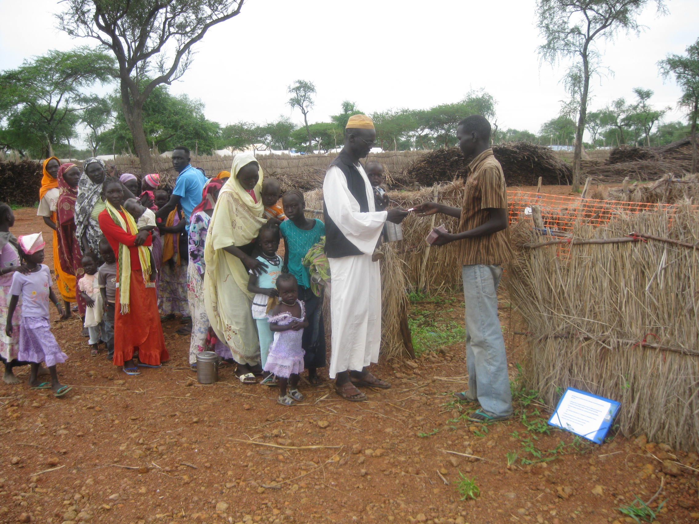 There are feeding programs for kiddos in many (but not all) of our emergency medical programs. Most of the time they are targeted to malnourished children only; the rest of the kids rely on general food distributions done by the World Food Program (WFP.) Once in a while WFP can also offer blanket feeding, which is like a general distribution but only for kids in a specific age range (usually under five years old.) We don’t usually do them since food distribution is a specialty in and of itself, but we stepped in this time since no one else could do it. So, starting this past Wednesday we put on a huge freaking party. Over 7,000 kids attended over four days. All of the under-three year olds got four pots of a high calorie nutritional supplement called Plumpy Doz. My guage might be a little off since I’ve (literally) only eaten rice and lentils for the past week, but Plumpy Doz is delicious. It tastes like peanut butter made with half cocoa butter.