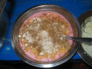 an example of condiment application gone wrong: cinnamon and oats on a bed of strawberry yogurt